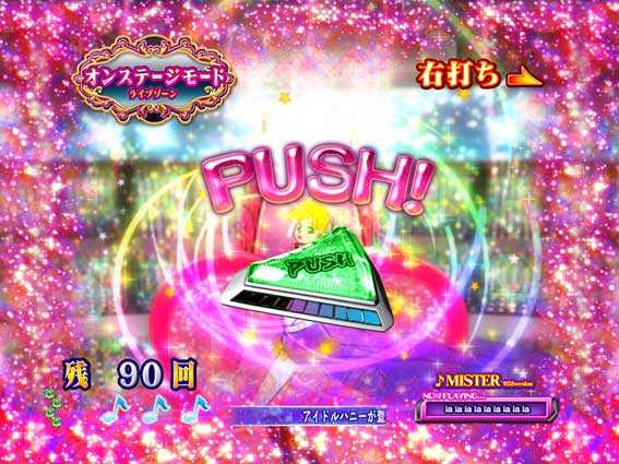 「PUSH!」表示後、ボタン一撃で大当りを狙う。ボタンアイコンの色や大きさ、種類に注目!