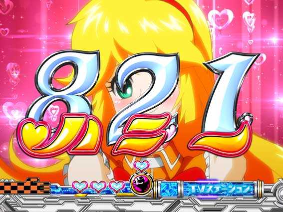 「821」の出目が止まると、CUTIE RUSH中のリーチ演出が発生するぞ!