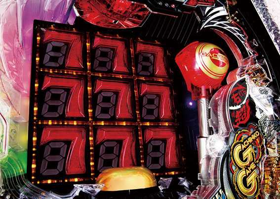 7図柄が3ライン以下で揃うと昇格演出が発生。ボタン連打ですべての7セグに7図柄を出現させればビッグガチンコボーナス昇格となる。