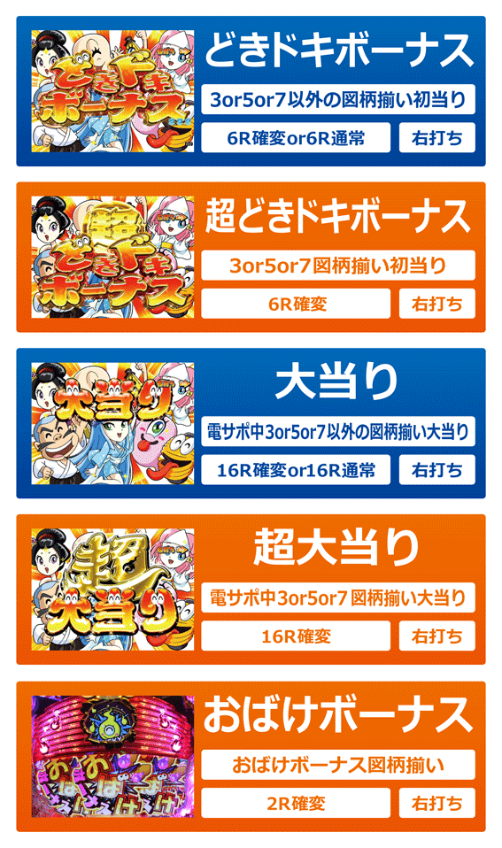 ■おばけの数0・・・大当り濃厚 ■おばけの数5・・・3.6% ■おばけの数6・・・16.7% ■おばけの数7・・・大当り濃厚 |