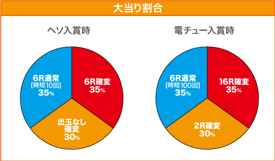 通常時に3or5or7以外の図柄が揃うと発生する、6R確変or6R通常大当り。終了後は10回転の電サポモード「ドキドキタイム」に移行。