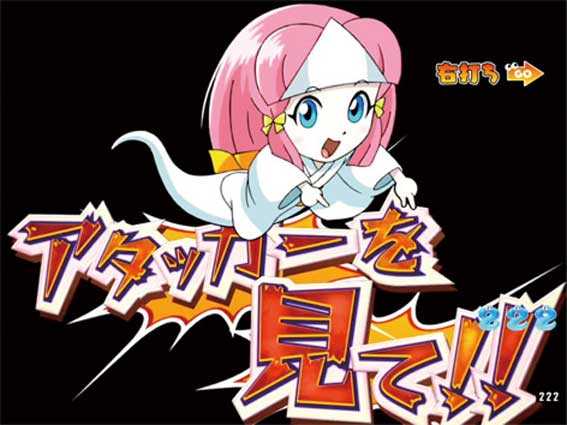 | 変動停止図柄予告 | ■右から停止・・・3.1% ■右コマ送り・・・0.3% ■右ロング送り・・・0.3% ■左停止⇒右ロング&左コマ送り・・・0.3% ■同期送り・・・0.3% ■左右同時停止(ショート)・・・8.4% ■左右同時停止(ロング)・・・13.2% |