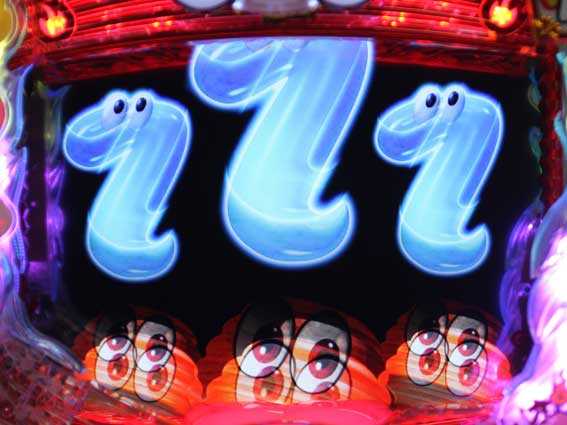 次回大当りまで電サポが続く確変モード。消化中の演出は至極シンプルで、同色のハズレ目が連続停止する「図柄停止連続予告」発生で大当りのチャンス。そのまま図柄が3つ揃って停止すれば大当りとなる。