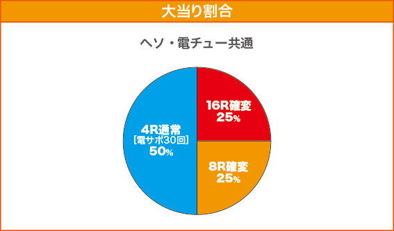 8Ror16R大当り終了後に突入。次回大当りまで電サポが続くぞ。なお、電サポ中の大当りラウンド比率は通常時と同じだ。