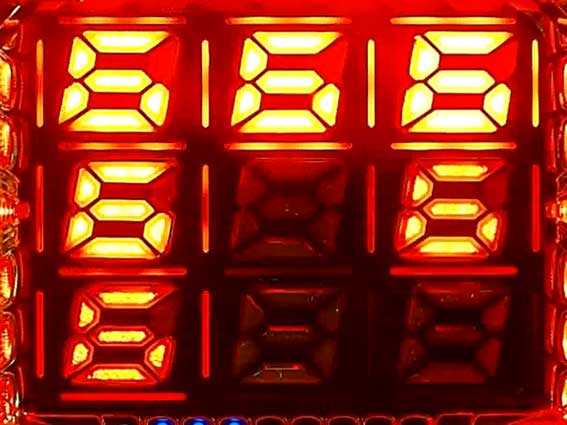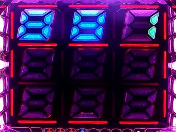 7セグは基本的に下段ラインで図柄が変動。リーチハズレ出現後、次変動が中段ラインで展開するとラインアップリーチとなる。再びリーチハズレが出現し、最終的に上段や縦ラインなどで図柄が変動すると信頼度アップだ。ただし、上段まで発展せずとも、下段や中段ラインで図柄が揃うこともあるぞ。
