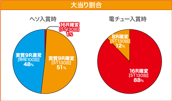 | 確変突入率 | ヘソ入賞時:52% 電チュー入賞時:100% (ST130回転) |