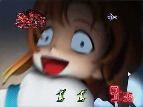 | 沙都子:27.27% 圭一:27.84% レナ:35.78% 魅音・詩音:43.70% 赤フェイクビジョン:30%以上 オレンジフェイクビジョン:大当り濃厚 赤字幕:20.0% |