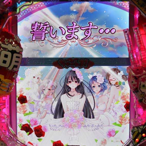 | リーチ後予告 | ・テンパイ予告(萌えアツ) ・シャッター予告(赤) ・永遠の誓い演出 ・萌え萌えカットイン |