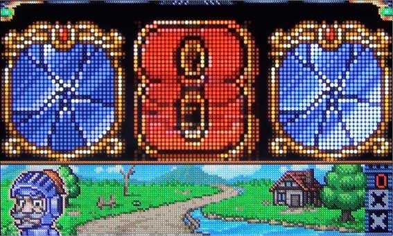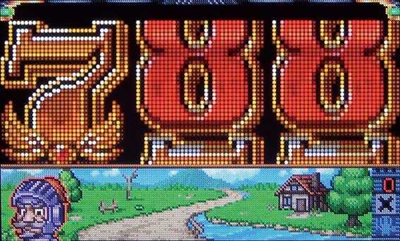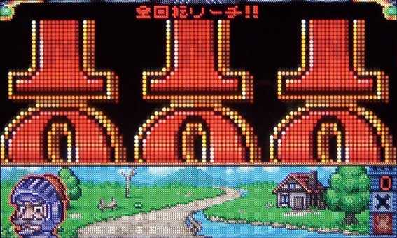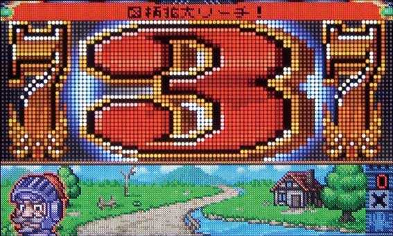 液晶演出は至極シンプル。リーチ時に図柄ウィンドウの色が金に変われば大当りのチャンスだ(上記画像はデフォルト)。保留がピンクに変化すれば!?