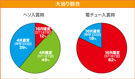 | 確変突入率 | ヘソ:61% 電チュー:82% (ST187回転) |