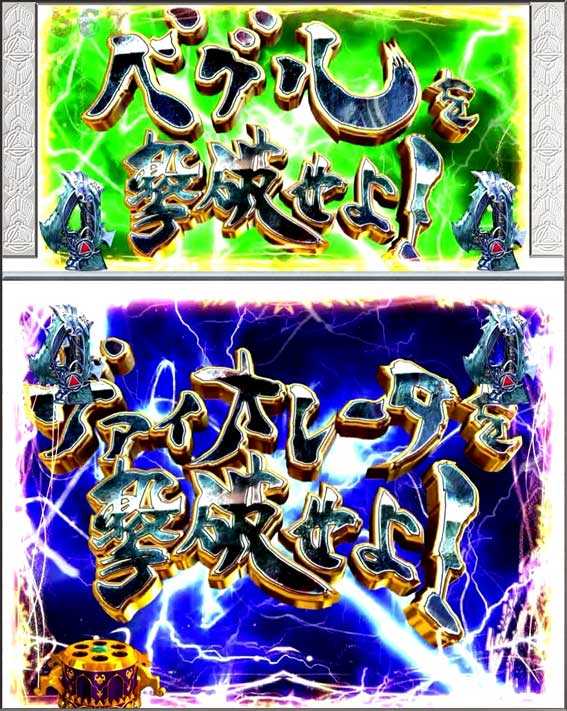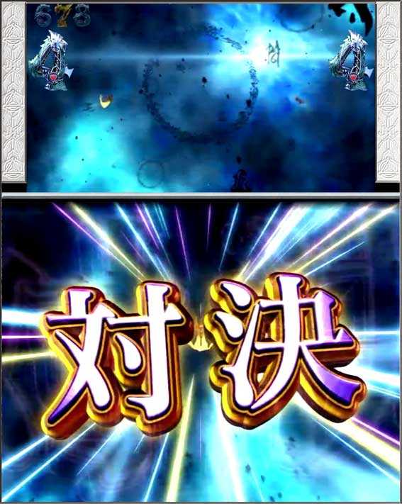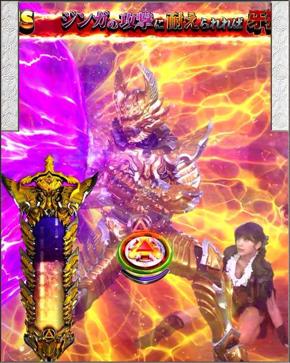 初回銀図柄揃い中に発生するバトル演出。敵の攻撃をしのぐことができれば4R確変&ST突入、負けてしまうと4R通常&時短突入となる。ただし、敗北してもザルバが登場して逆転のST突入となるパターンも存在する。