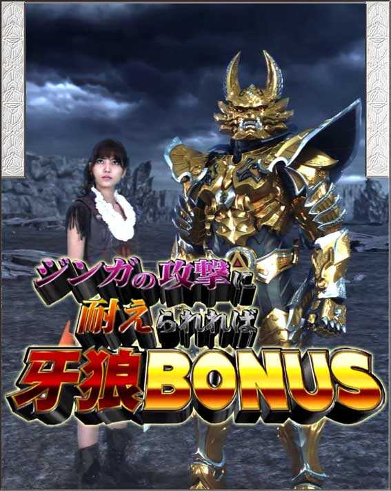 初回銀図柄揃いで発生。バトルで流牙と莉杏が倒れなければ牙狼BONUSとなり4R確変&ST突入、敗北で漆黒BONUSとなり4R通常&時短突入(逆転演出発生の可能性もあり)。