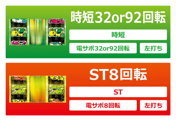6or8R大当り経由のST後は32回転、15R大当り経由のST後は92回転継続。演出は通常時と同様のものが展開する。