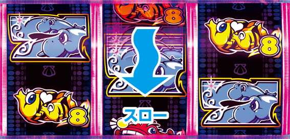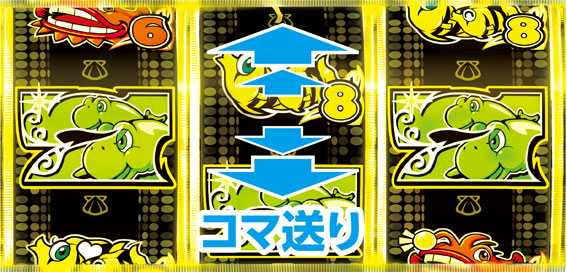 | 図柄スベリ予告 | 右図柄がスベるとチャンス。 2コマスベリでスーパー発展濃厚! |