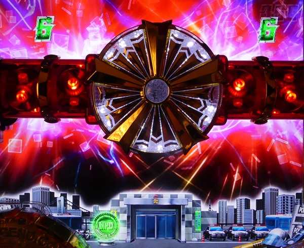 踊るランクアップBONUS中は、3R・6R・9R終了時にボタンPUSH演出が発生。ここで演出に成功すれば、ランクアップ成功となる。1回でも成功すれば確変大当りが約束されるので、1回目のPUSHは超重要だ。もちろん、1回も成功しなくても確変の可能性は残る。パトトルネードギミックが落下し、「封鎖できません」の名セリフが発生すると、16R継続濃厚! なお、ゴチポケットの恩恵で、一撃2500個オーバーも珍しくないぞ。