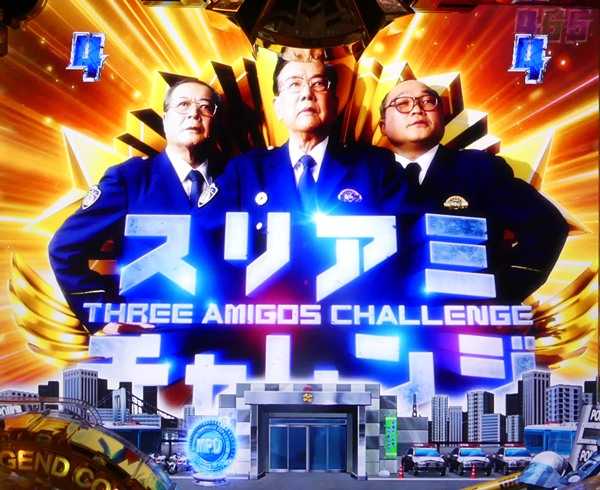 変動中に突如発生するリーチ。最終的にパトトルネードギミックが落下して、おなじみのスリーアミーゴスが勢揃いすれば大当りだ!