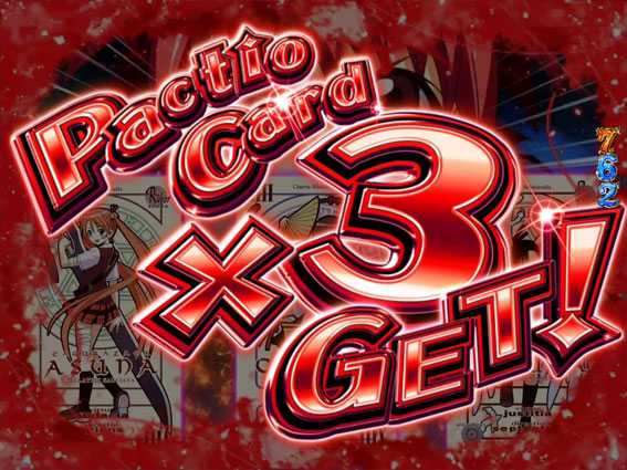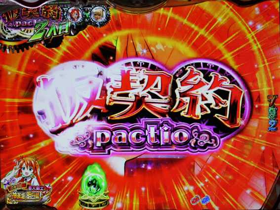 仮契約pactioでカードを3枚以上ストックすることが重要。さらに6大チャンス演出が絡めば大当りは近いぞ。リーチは3種類あるエピソード系への発展に期待!