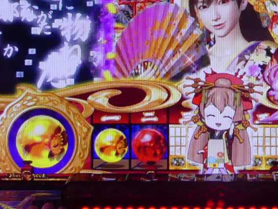 | じゃんけんチャンス | ■暗転・・・9.7% ■金反物出現・・・大当り濃厚 ■赤タイトル・・・22.8% ■桜柄タイトル・・・大当り濃厚 ■チョキ/チョキ/チョキ・・・大当り濃厚 ■赤テロップ・・・18.8% |