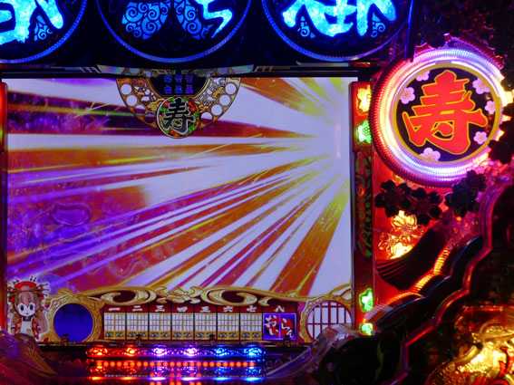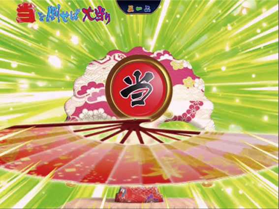 | 投扇興チャンス | ■暗転・・・9.7% ■金反物出現・・・大当り濃厚 ■赤タイトル・・・15.1% ■桜柄タイトル・・・大当り濃厚 ■赤カットイン・・・24.1% |