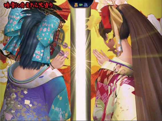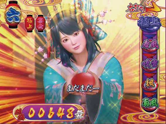 各花魁が単独で大当りを狙うスーパーリーチ。南風<楓<吹雪<春風の順に信頼度がアップする。また、ハズレ後に春一番リーチへ発展することもある。