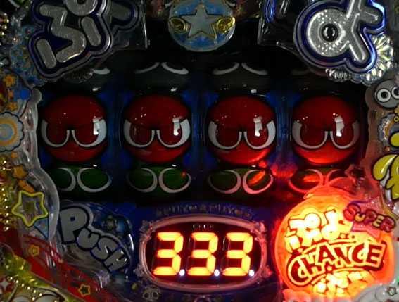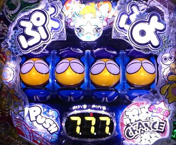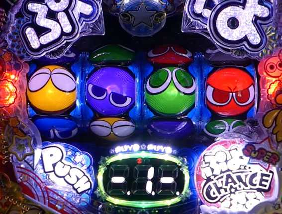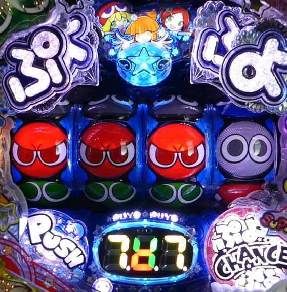 7セグに順目(456など)や逆順目(654など)が止まると連続演出スタート。連続演出の回数と同色ぷよの数は連動しており、3回発生(同色ぷよ3個)すれば大チャンスだ。