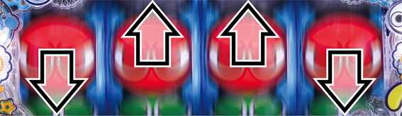 図柄揃い直後に発生する図柄昇格演出。ボタンPUSHで赤図柄揃いに変化すればぷよぷよCHANCE(赤)突入濃厚、7図柄揃いに変化すればSUPERぷよぷよCHANCE突入濃厚だ。