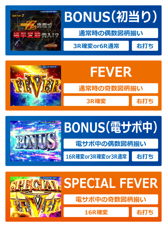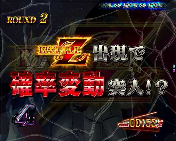 BATTLE OF Z中や時短中に奇数図柄が揃うと発生する16R確変大当り。終了後はBATTLE OF Zに突入する。