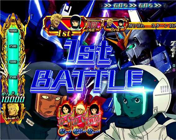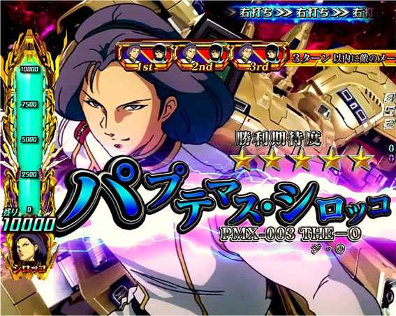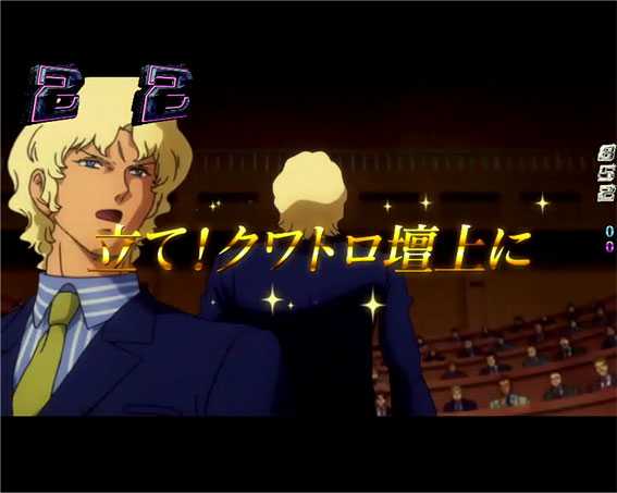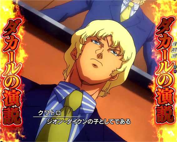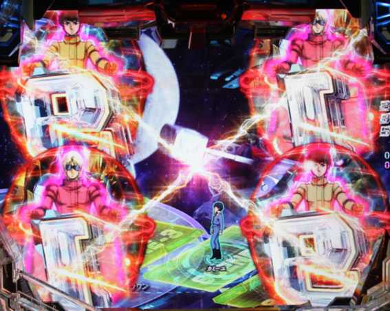 リーチ後の液晶暗転から発展する激アツリーチ。原作のラスボスであるシロッコに勝利できれば大当りとなる。