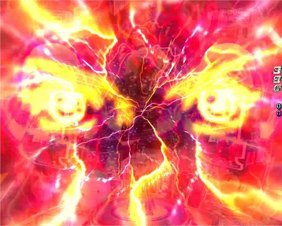 通常時に図柄が揃うと、大当りの前に専用ムービーが発生。偶数図柄が揃っていた場合は画面左上で昇格チャンスが発生し、ボタン連打で奇数図柄に変われば確変昇格となる。ボタン連打時の図柄エフェクトが赤だと昇格期待度がアップするぞ。