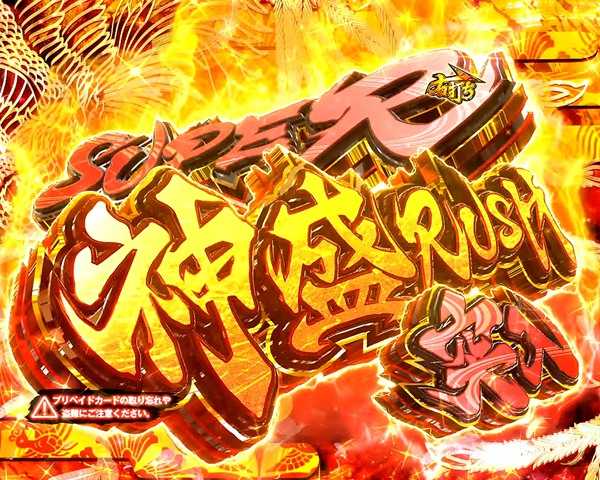 通常時と電サポ中に16R確変大当りを引くと発生。大当り消化後はST128回転のSUPER神盛RUSHに突入する。
