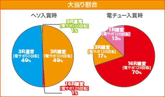 | 確変突入率 | ヘソ:50% 電チュー:100% (ST128回転) |