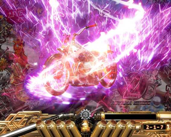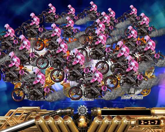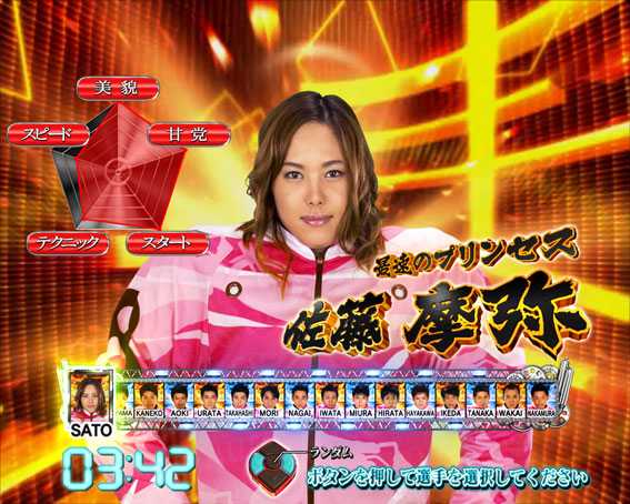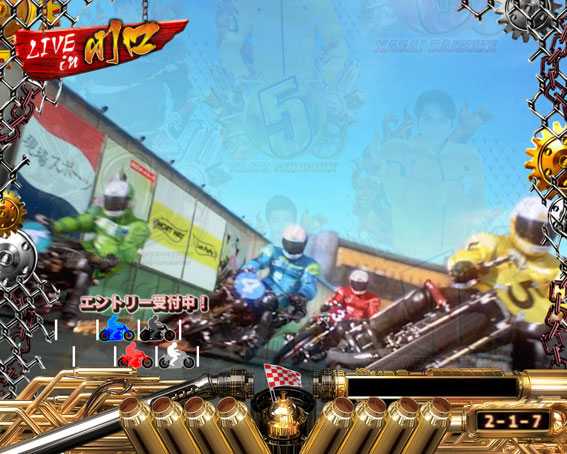 公営競技の「オートレース」がモチーフ。人気選手の森且行ら総勢36名の実在レーサーが登場し、大当りを目指してレースバトルを繰り広げる。スペックは大当り確率が約189分の1のライトミドルで、細かい大当りを積み重ねていくリミットタイプ(9回リミット)だ。