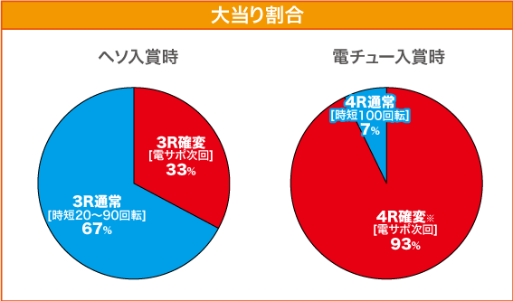 確変突入率 | ヘソ:33.0% 電チュー:93.0% (リミット到達時はすべて通常大当り) |