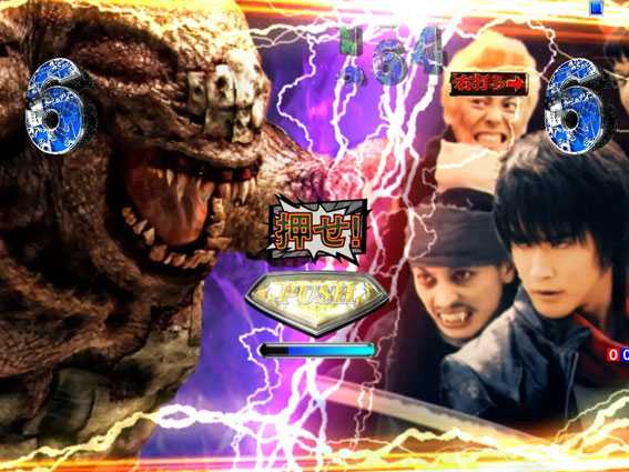 リーチ後演出 | ・全面戦争予告 ・丸太ギミック作動 |