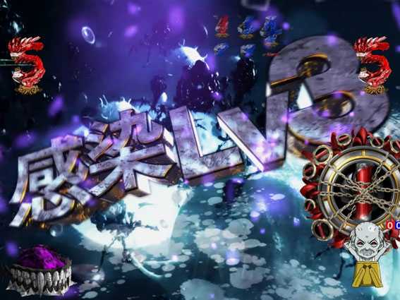 感染Lvが最大値(Lv5)まで上がれば大チャンス。コレに保留変化予告や連続予告が絡み、強敵リーチや実写邪鬼リーチ、ストーリーリーチに発展して当たるのが王道となりそうだ!