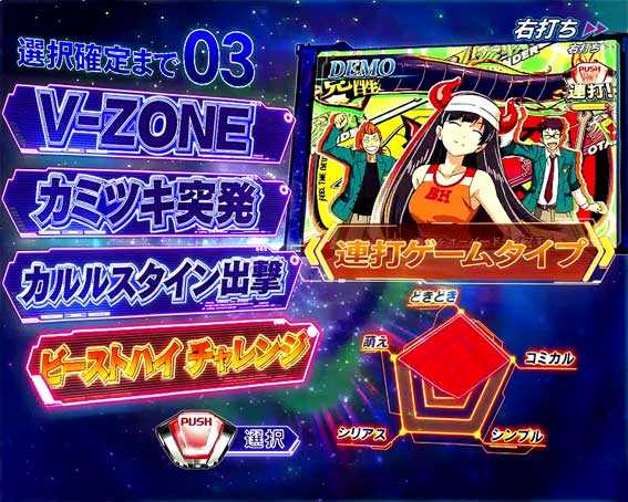 ショーコの言葉に生徒たちが奮い立てば大当りとなる高信頼度リーチ。チャンスアップが複数あるが、デフォルトでも期待大。
