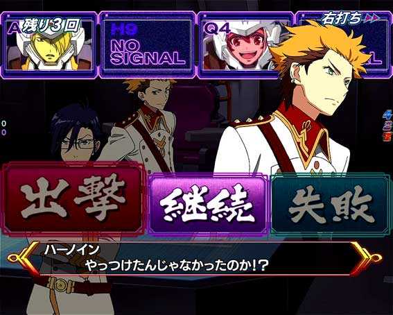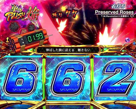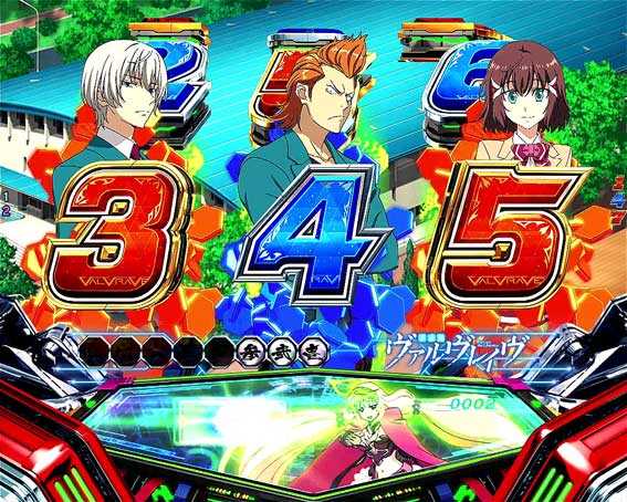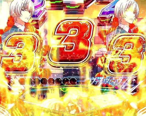ヴァルヴレイヴ1号機がみずからの腹部に剣を突き刺せば大当りとなる激アツリーチ。チャンスアップは存在せず、発生時点でアツい。