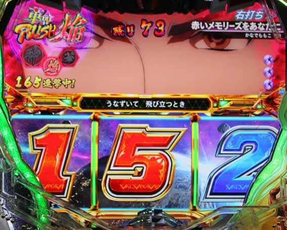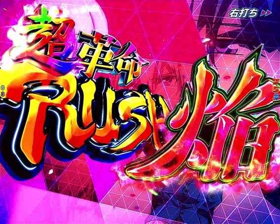 革命の刻成功で突入する、次回大当りまで続く確変or100回転の時短。3種類のRUSHが存在し、「超革命RUSH神」なら確変濃厚。「革命RUSH焔」or「革命RUSH蒼」だと確変or時短だ。リミット到達時や時短状態で確変を引き戻せば、リミット回数リセット&革命RUSH継続となるため、大連チャンが期待できる。
