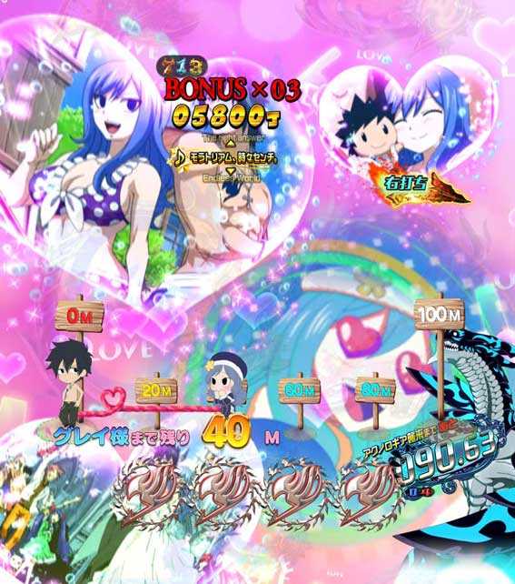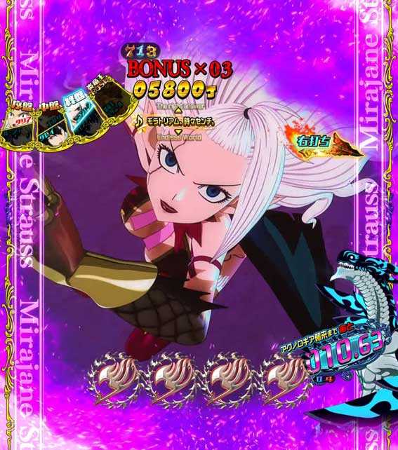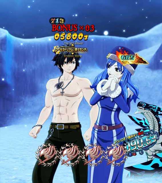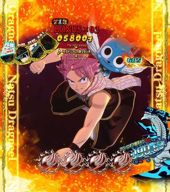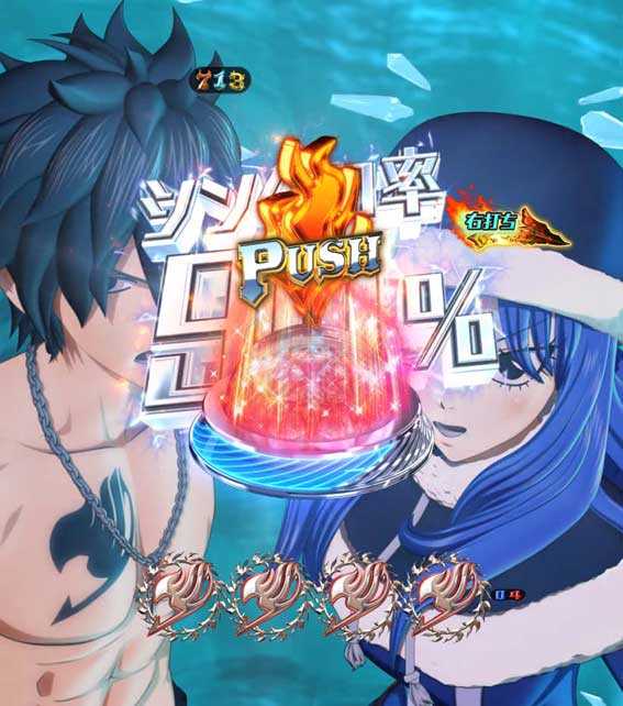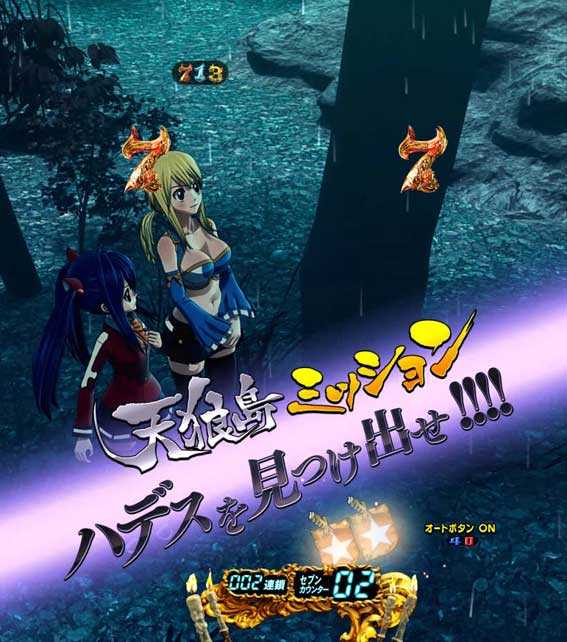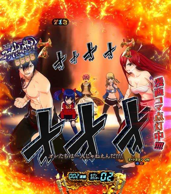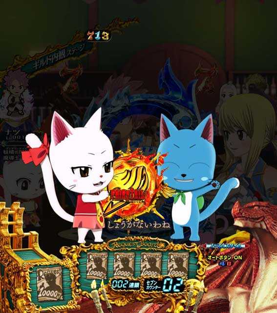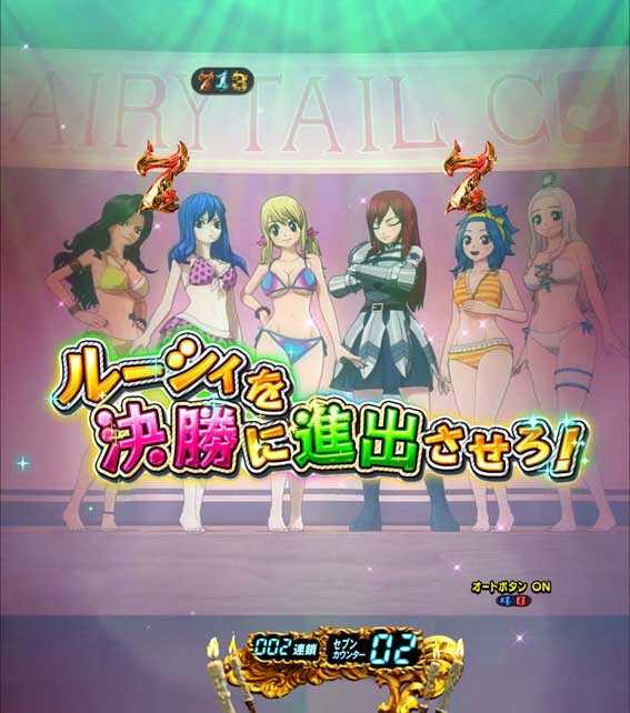 フェアリーテイルに所属する魔導士が全員集まれば大当りとなる特殊リーチ。ドンチャンス目停止後のドンギミック落下から発展する可能性あり。