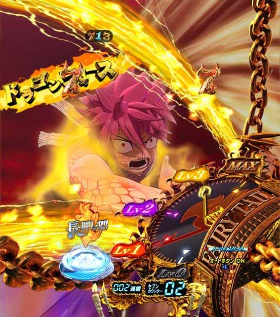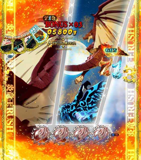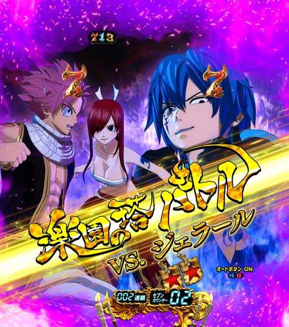 ドラゴンスレイヤー予告で図柄が完成すると発展。ナツら3人の滅竜魔導士が協力してドロマ・アニムの撃破に臨む。
