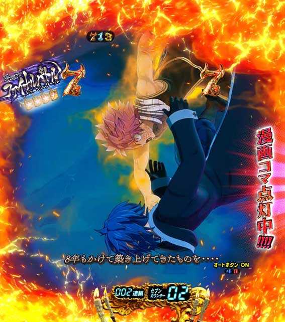 変動中演出 | ・漫画コマLV予告(LV4) ・フェアリーテイル連続予告(3連) ・壮行会連続予告(3連) |