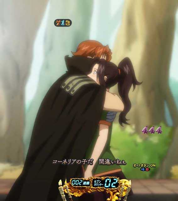 アニメの名シーンをそのままスーパーリーチとして採用。画面周囲の帯の色や当落ボタンの種類などで信頼度が変わる。