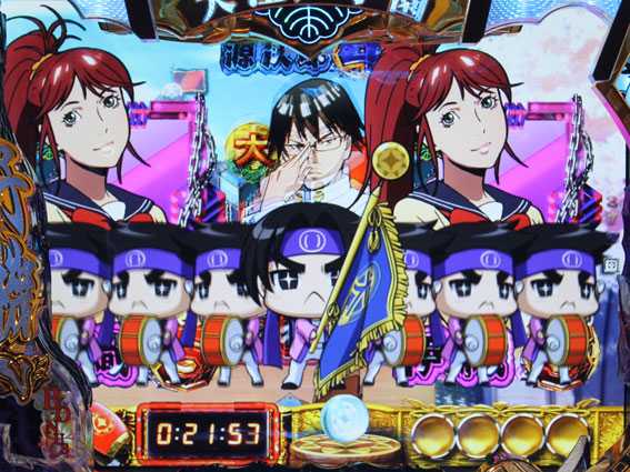 業界初の「タイムぱちんこ」と銘打ち、ニューギンから『CRA大江戸学園~神~』が登場。最大の注目ポイントは、全大当り終了後に突入する「TIME ATTACK」(TA)で、TAは突入時に獲得した秒数が0になるまで継続。TA中は秒数が残っていれば何度でもV入賞による大当りが発生するため、新たな連チャンの可能性を秘めたスペックとなっている。