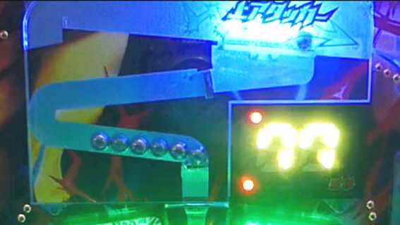 7セグで奇数図柄が揃うと上アタッカーが開放。ココに玉が入賞すれば、クルーン入口で一旦貯留された後にクルーンへ移動する。7セグで77揃いが出現すれば、上記画像のように複数個の玉を一気にクルーンへ送り込むことも可能だ。もちろん、クルーンへ玉が多く移動するほどV入賞の可能性もアップするぞ。