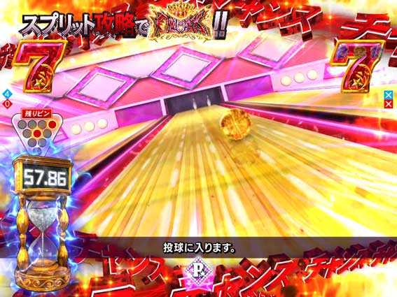 ロングリーチやSPリーチハズレ後などに発生。ボタンPUSHでボウリングギミックが落下すれば大当りだ!