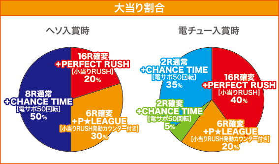 確変突入率 | ヘソ:50% 電チュー:65% |