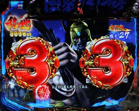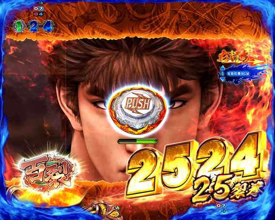 勝てば大当り濃厚or小当り分の百裂アイコン獲得。ケンシロウが敵の攻撃を被弾すると2R大当りが発動!
