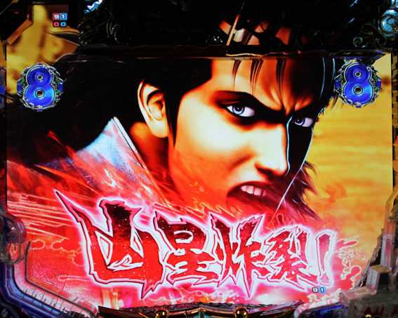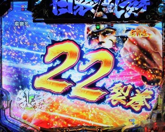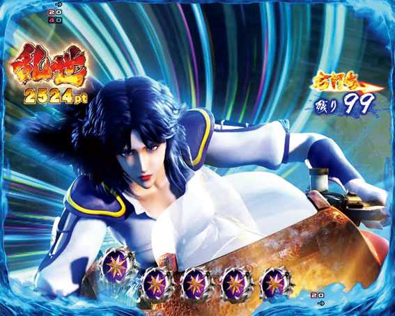 初当りが百裂乱舞BONUSだった場合、16R分の出玉獲得後は小当りRUSHへ移行するが、液晶では百裂乱舞BONUSがそのまま継続する。小当りRUSH中は百裂アイコンを獲得し続ける限り終わることがなく、バトルに発展して負けるまで続くぞ。小当りRUSH中の銀アイコン獲得時は、アタッカーがショート開放となるぞ。乱世は確変(小当りRUSHではない)or時短の電サポモードで、消化中に超乱世モードへ移行した場合は確変状態濃厚となる。