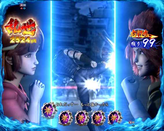 強敵登場などからバトルに発展すると何らかの大当りか小当り当選の可能性大!