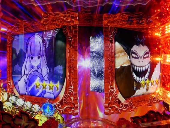 V穴へ入らなくても、左右にあるハズレ穴に入りさえしなければまだチャンスはアリ。再度フィンによって玉が弾かれ、V穴orハズレ穴のどちらかに入るまで役モノ抽選が繰り返される。V穴入賞率は約1/4.5だ。白童子チャンスと違い、こちらからの大当りは必ずストックタイムへ突入するので、ストックタイム突入のメイン契機となっている。